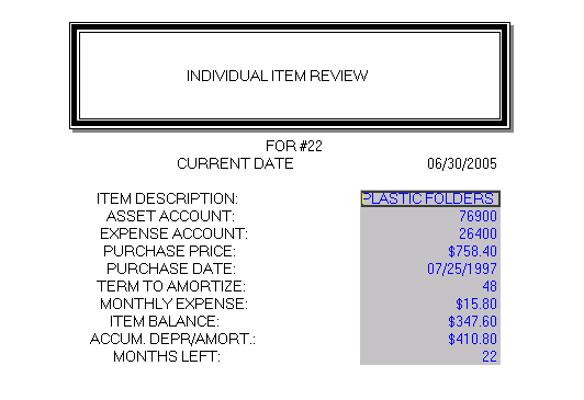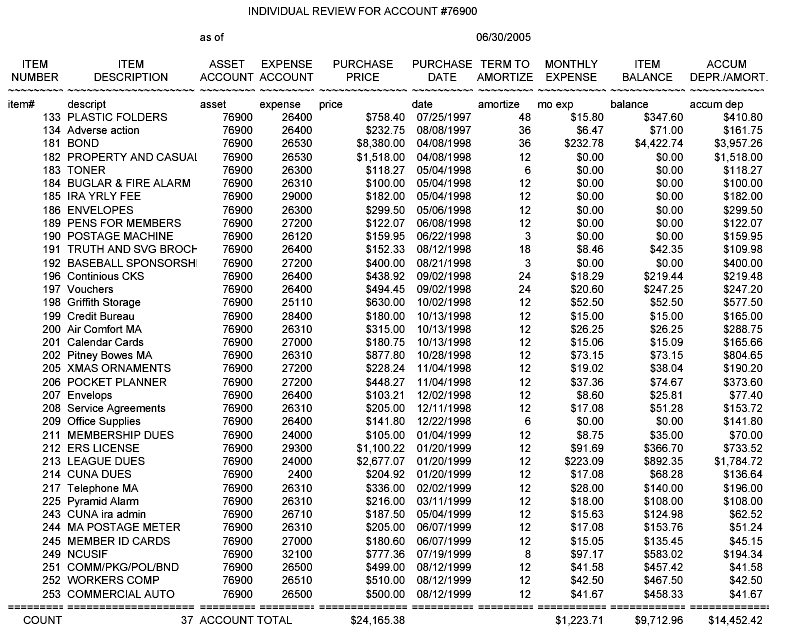 These are just a sample of reports generated by this Spread Sheet. The Spread Sheet is partially macro driven from original data input to printing specific reports. It also supplies journal entries for various transaction.